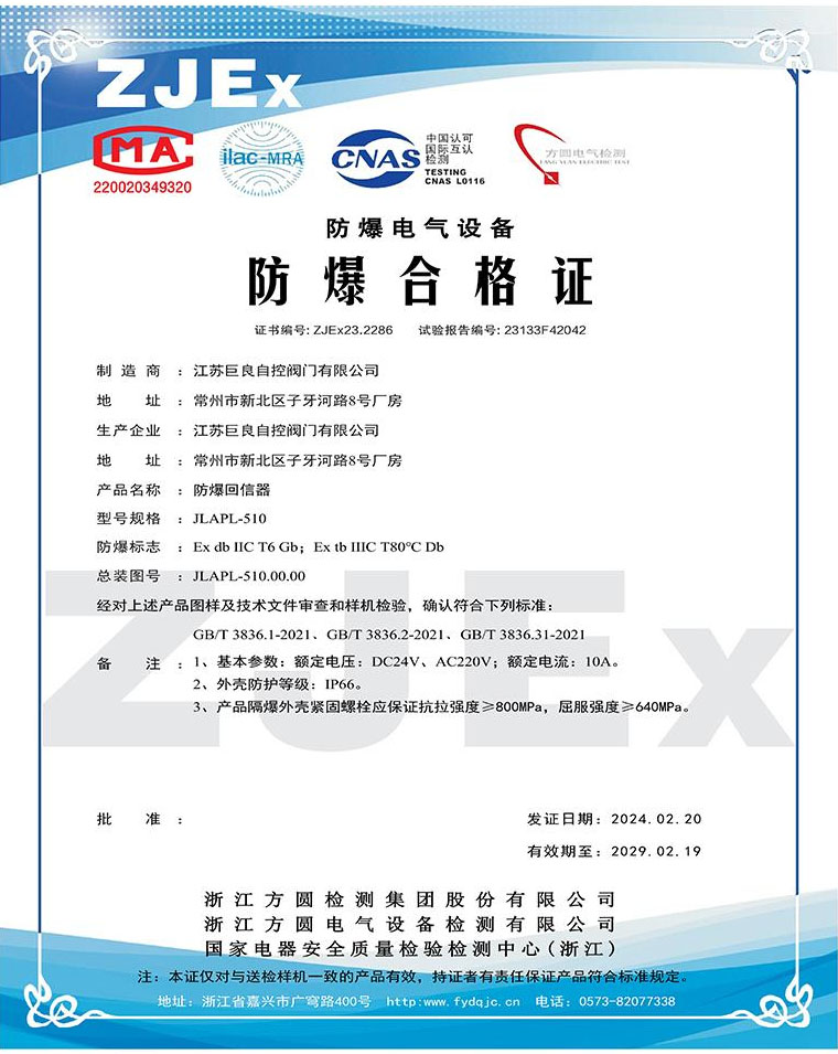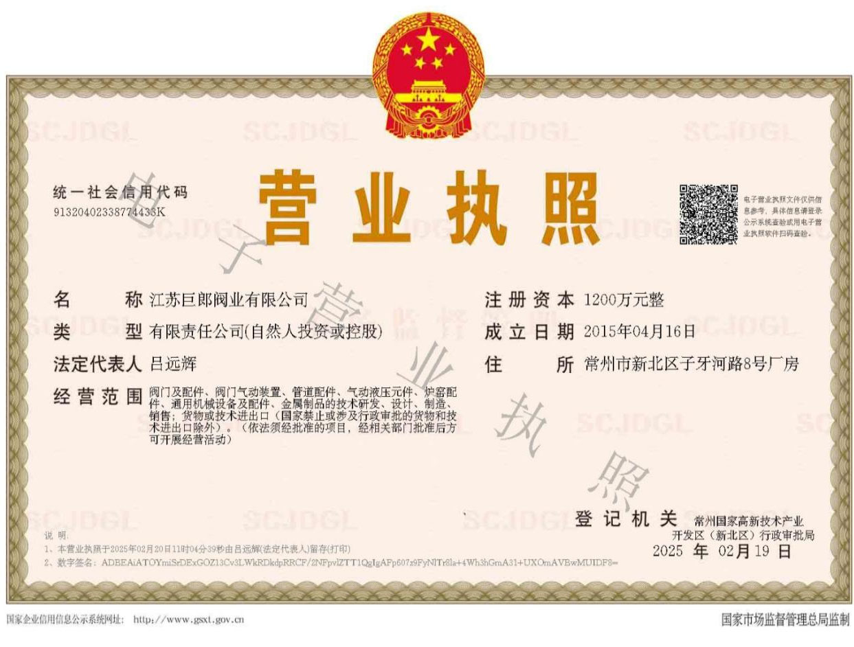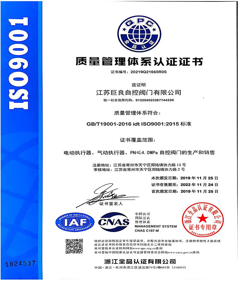 实用新型专利证书-一种闭合时可自锁夹紧的气动阀门