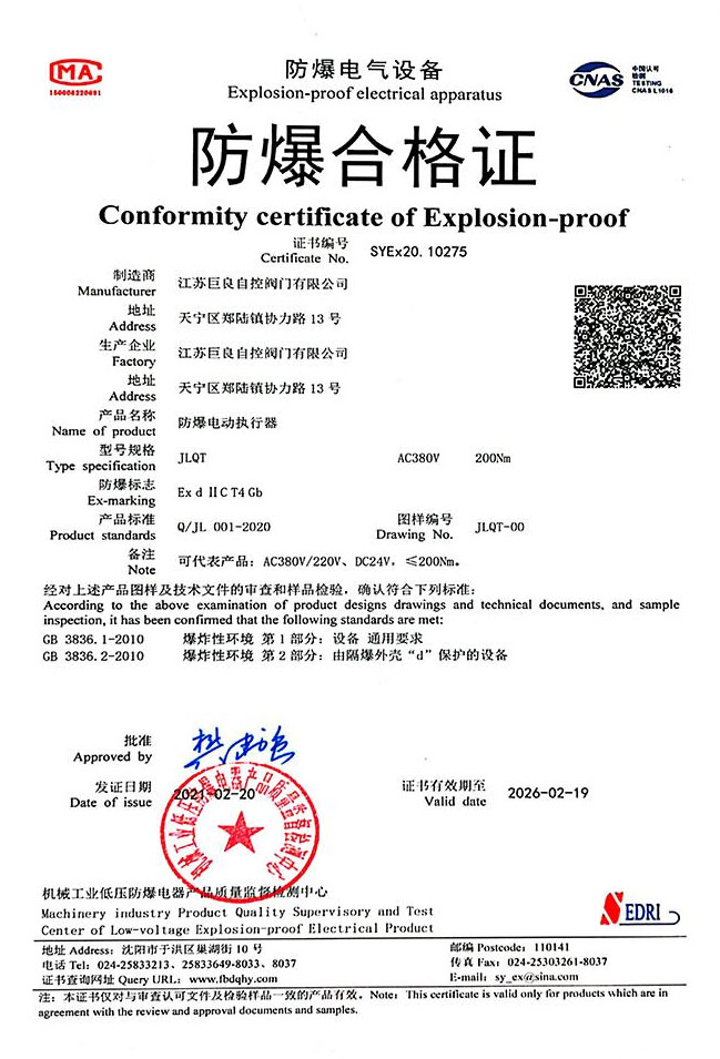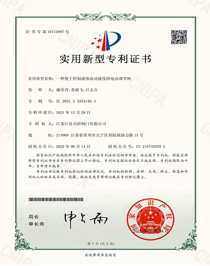 实用新型专利证书-一种具有高密封机构的电动阀门