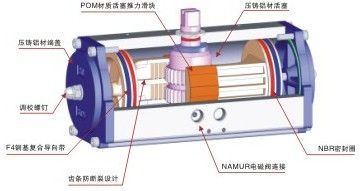 外壳是由铝合金挤压拉制成型,表面喷砂并经硬质阳极化氧化处理,能够防腐、耐磨。具有重量轻,外型美观强度和密封可靠。醇缩醛轴垫片的活塞导向环肯有很低的磨擦阻力,能够吸收活塞侧向推力。气缸内壁经过珩磨,以减小整体运动磨擦力,在输出轴的顶部的底部装有醇缩醛轴承,以降低旋转磨擦阻力,延长使用寿命。