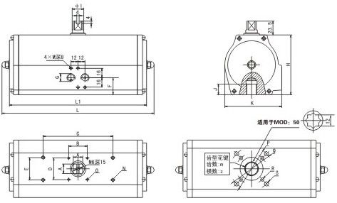 GT系列气动执行机构安装尺寸