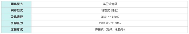三、电动高压截止阀 技术参数