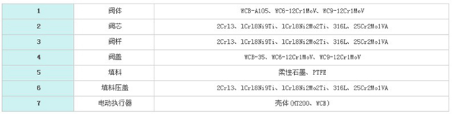 四、电动高压截止阀 零件材料